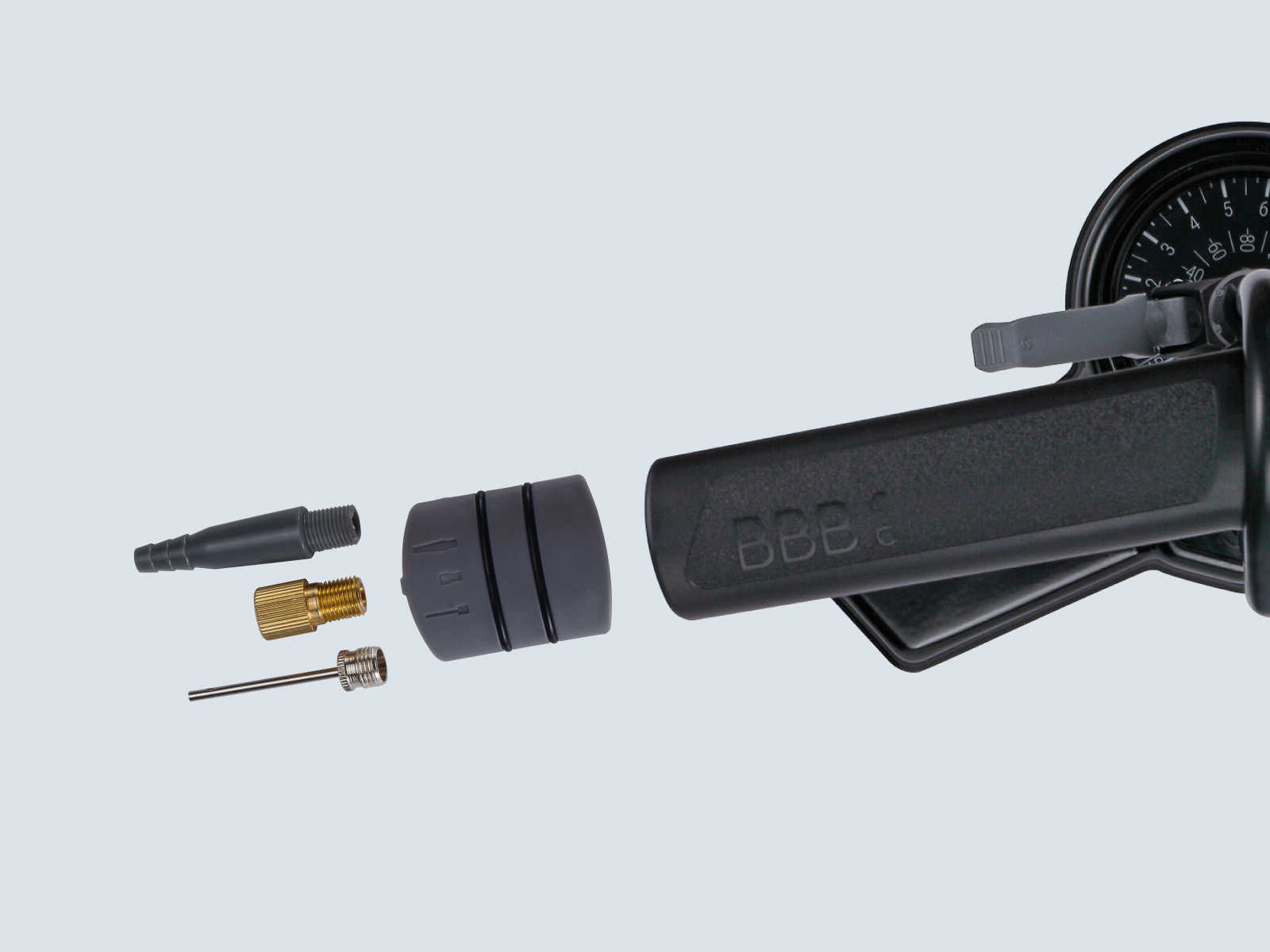 - Extra long floor pump with 90 cm high pressure rubber hose