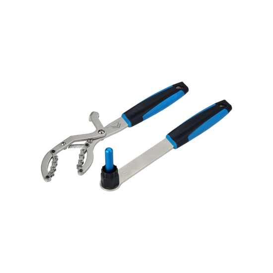The CassetteRemover set contains three tools you will need when removing your cassette from your bike. The T-rex and the LockOut in combination with the GuidePin for bikes with a thru-axle. With this set, you are prepared for all maintenance to your cassette.