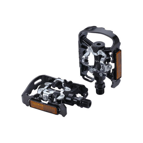 - Pedál dupla funkcióval: az egyik oldala SPD-kompatibilis, a másik oldala normál cipőhöz való